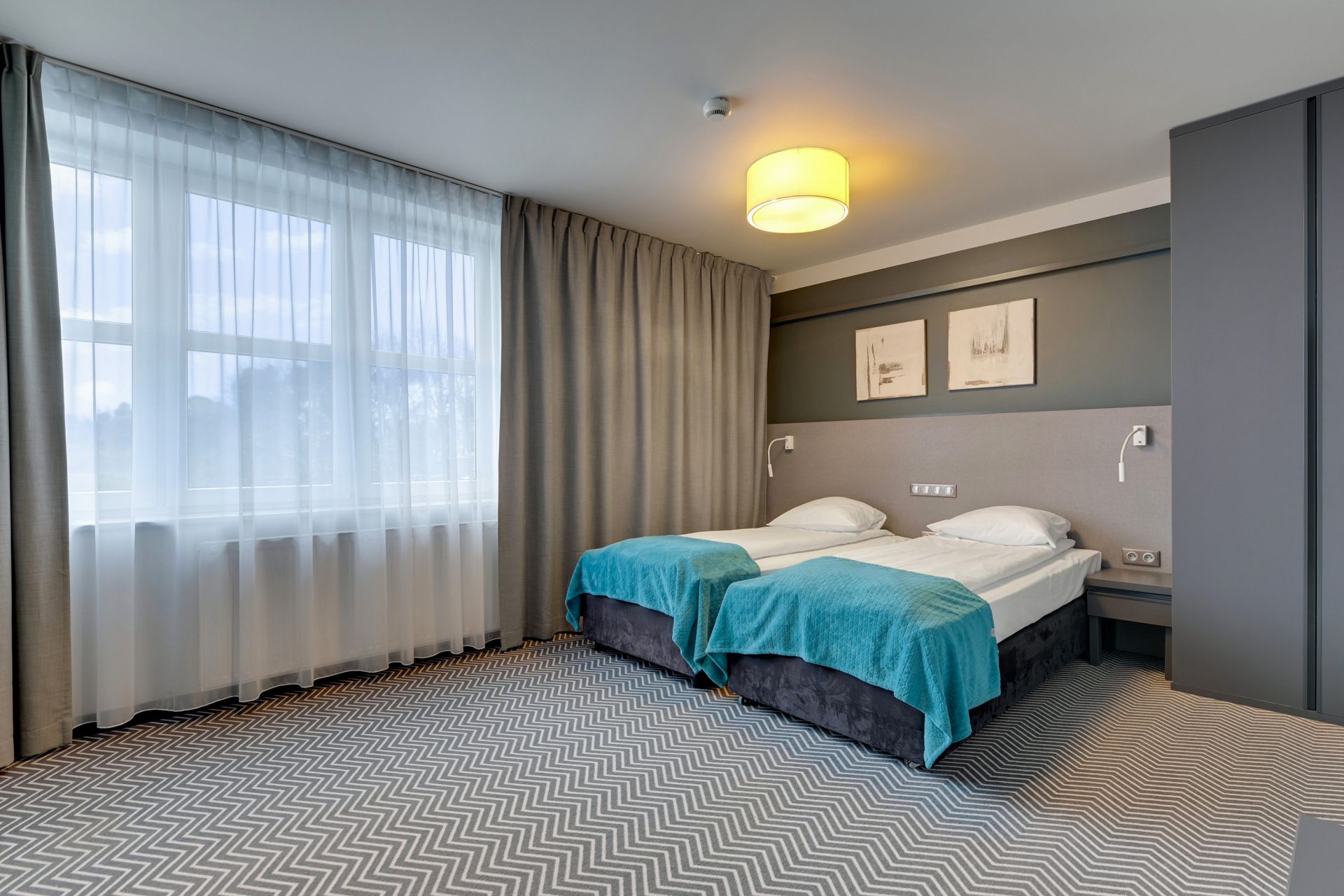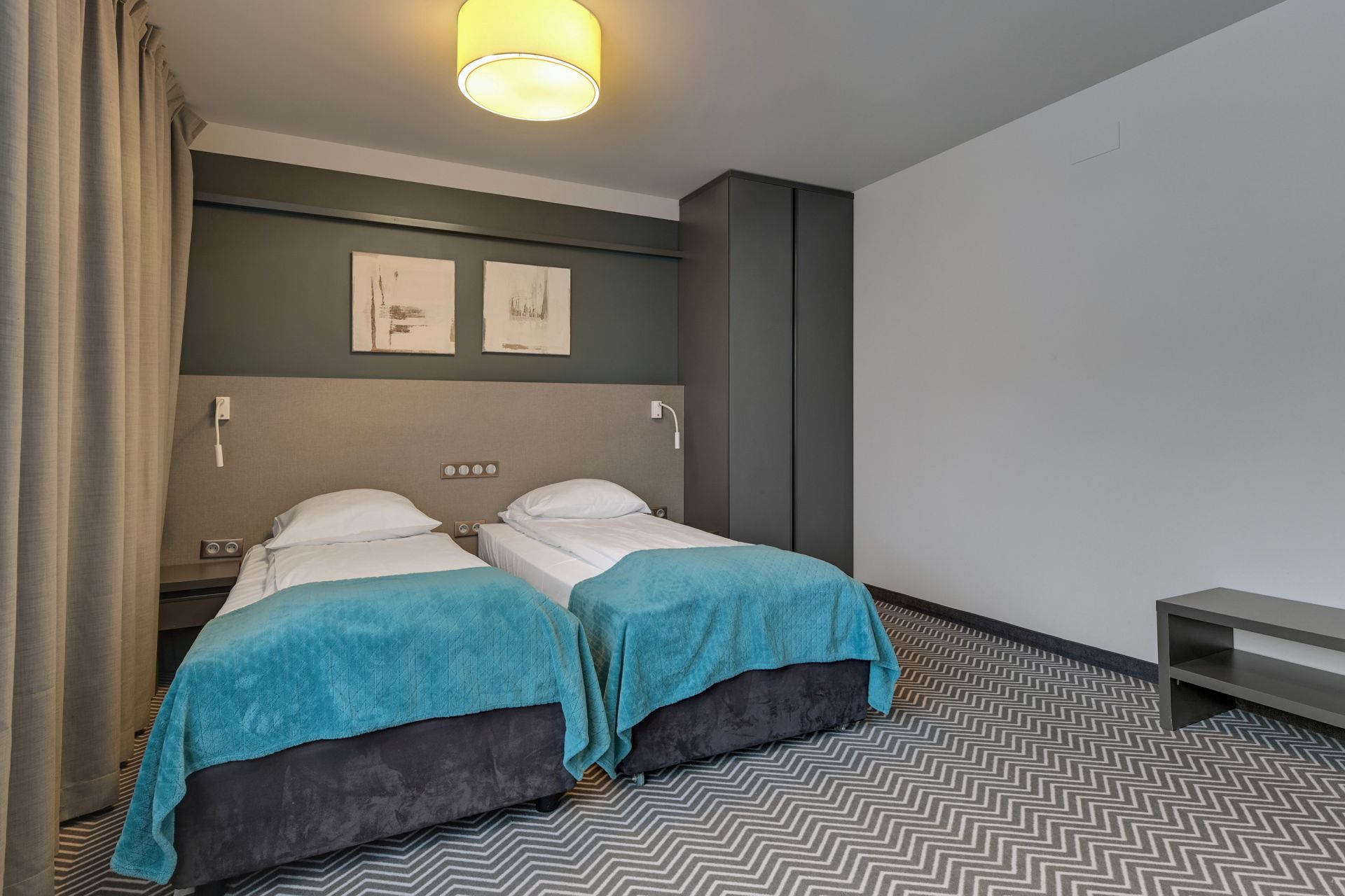 Dwupokojowy apartament So Studio o powierzchni 60 m² oferuje przestronność i wygodę idealną dla rodzin lub grup podróżujących razem. W każdym z pokoi znajdują się dwa łóżka o wymiarach 90x200 cm, z możliwością ich połączenia na życzenie gości. Apartament posiada w pełni wyposażony aneks kuchenny, co pozwala na samodzielne przygotowywanie posiłków. To doskonały wybór dla tych, którzy cenią sobie komfort dłuższego pobytu z pełną niezależnością.