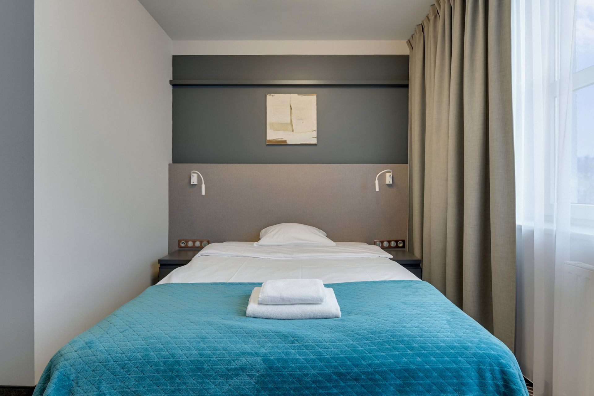 Pokój jednoosobowy typu business o powierzchni 16 m² zapewnia przestronność i wygodę dla osób podróżujących służbowo. Znajduje się w nim komfortowe łóżko o wymiarach 140x200 cm oraz biurko. Idealne miejsce zarówno do pracy, jak i relaksu.