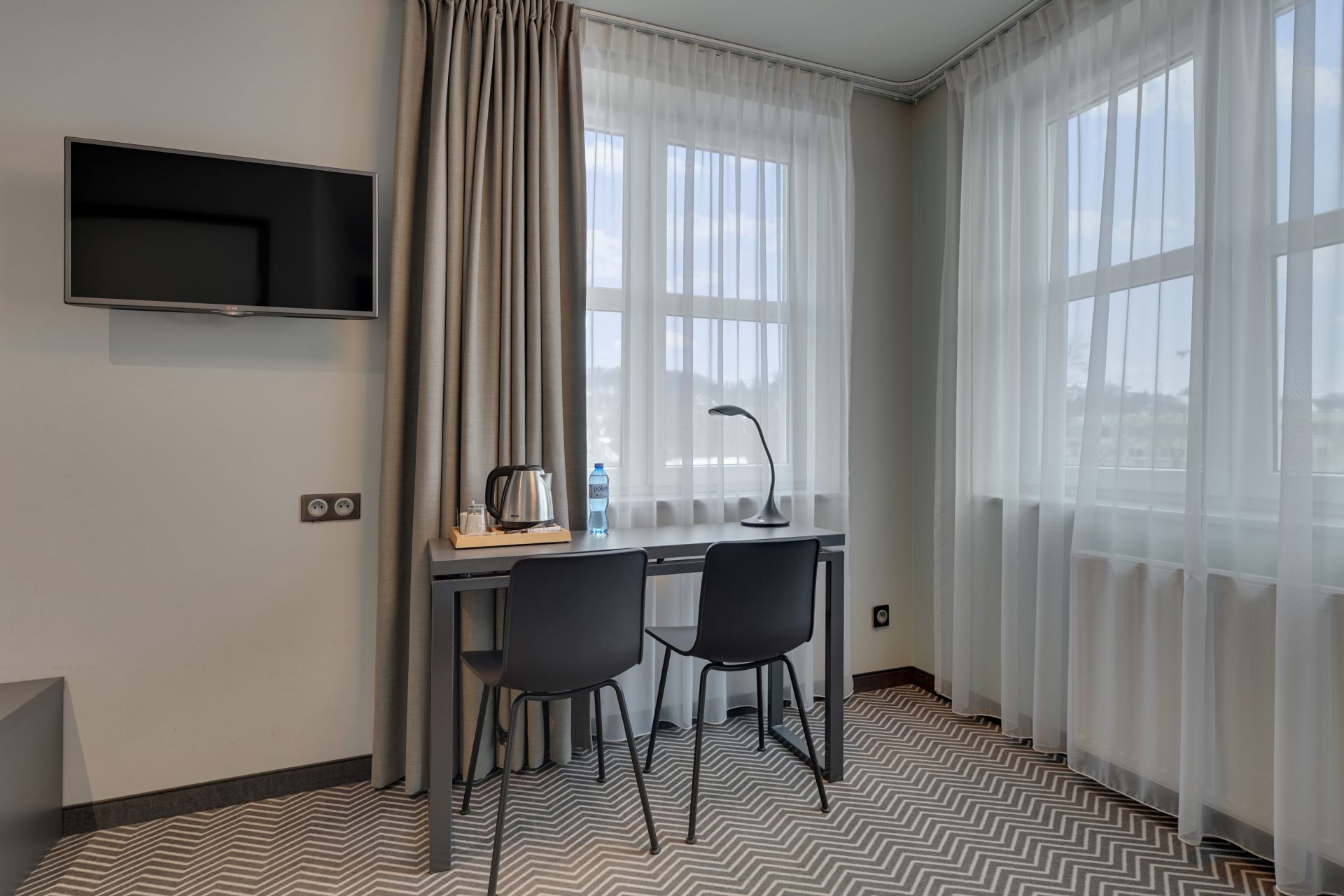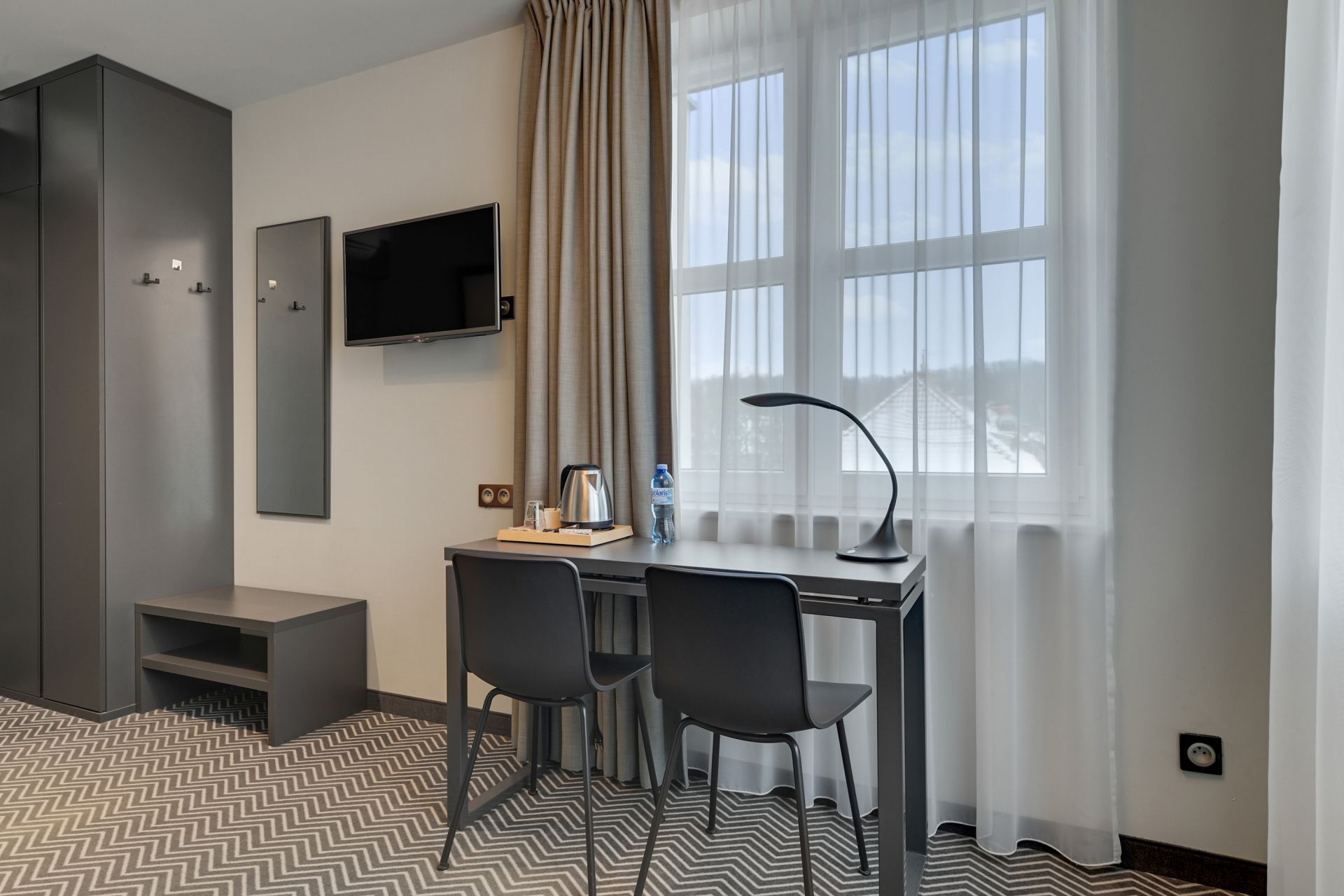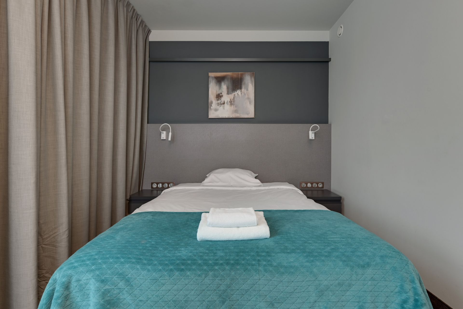 Pokój jednoosobowy standard o powierzchni 13 m² oferuje komfortowe łóżko o wymiarach 140x200 cm. Przestrzeń jest funkcjonalnie urządzona, idealna do wypoczynku i pracy, zapewniając wygodę na każdy dzień pobytu.